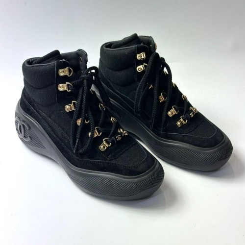 Черные женские кроссовки от Chanel выполнены из натуральной замши. Кроссовки имеют шерстяные вставки, логотип бренда сбоку и удобную шнуровку. Практичная и удобная модель. В нашем интернет-магазине вы можете купить копии кроссовок с доставкой по Москве и по всей России.