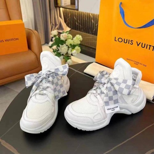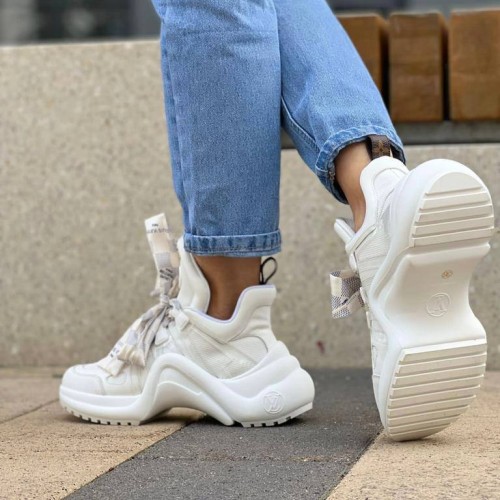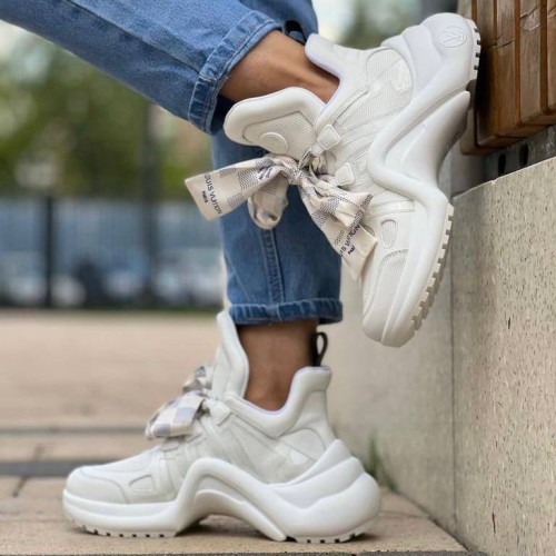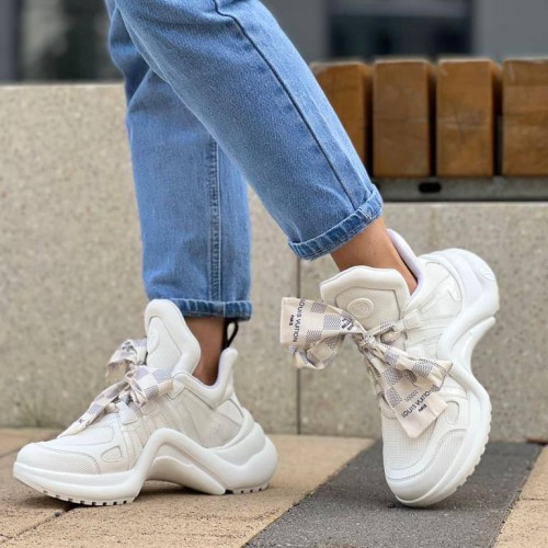Женские кроссовки Louis Vuitton Archlight из натуральной кожи и текстиля белого цвета. Логотип бренда украшает язычок и объёмную подошву. Женственная модель, украшенная бантом, привнесет изюминку в любой образ. В нашем интернет-магазине вы можете купить копии кроссовок с доставкой по Москве и по всей России.