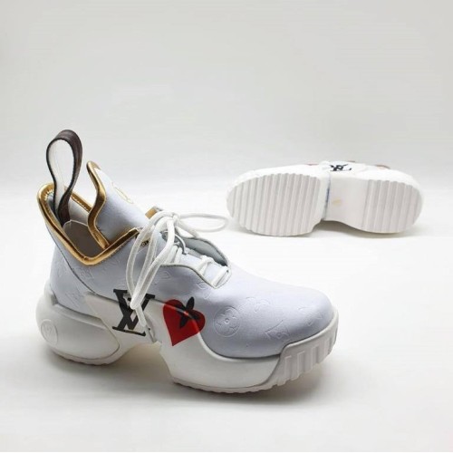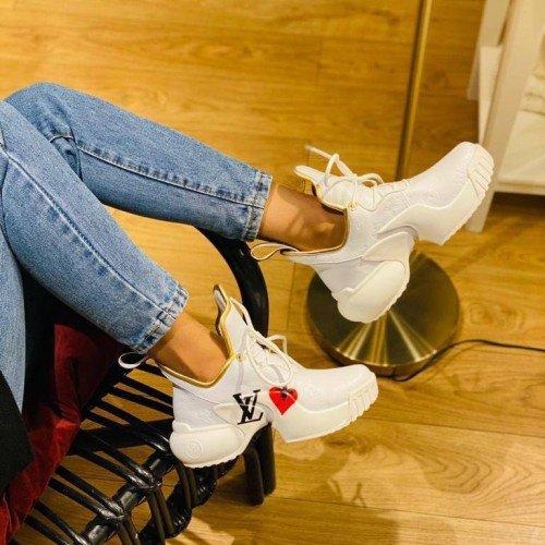 Белые кроссовки Louis Vuitton из натуральной кожи. Белоснежная модель украшена ярким принтом и золотистыми вставками. Помогут вам создавать прекрасные образы. В нашем интернет-магазине вы можете купить копии кроссовок с доставкой по Москве и по всей России.