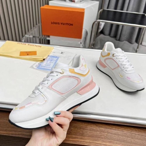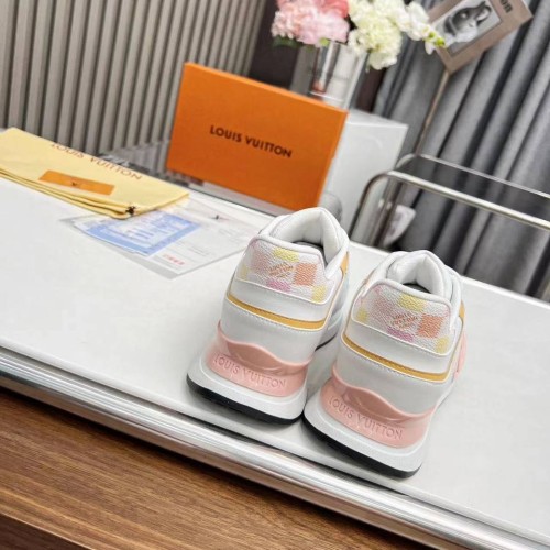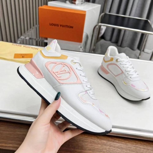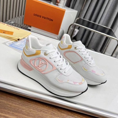Белые кроссовки от Louis Vuitton с розовыми вставками из натуральной кожи и текстиля. Кроссовки созданы для тех, кто хочет выделяться и ценит стильную, но при этом комфортную обувь. Удобная шнуровка надежно фиксирует обувь на ноге. Ноги будут уставать гораздо меньше благодаря стельке из мягкого упругого амортизирующего материала, который держит свою форму. В нашем интернет-магазине вы можете купить копии кроссовок с доставкой по Москве и по всей России.
