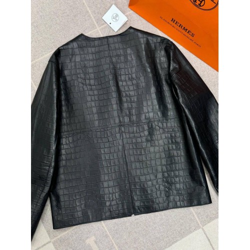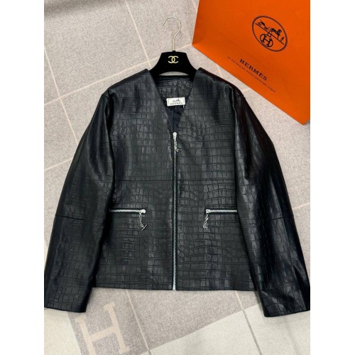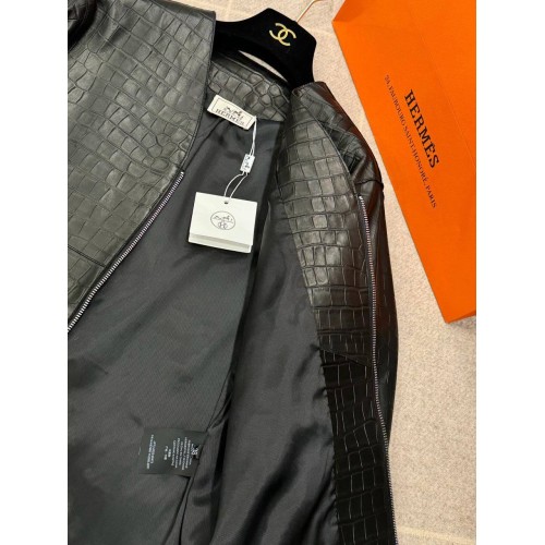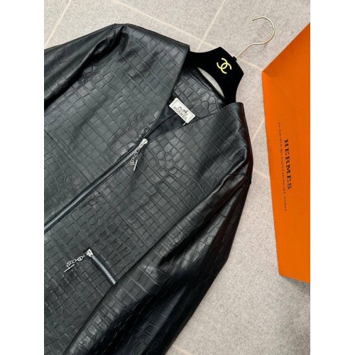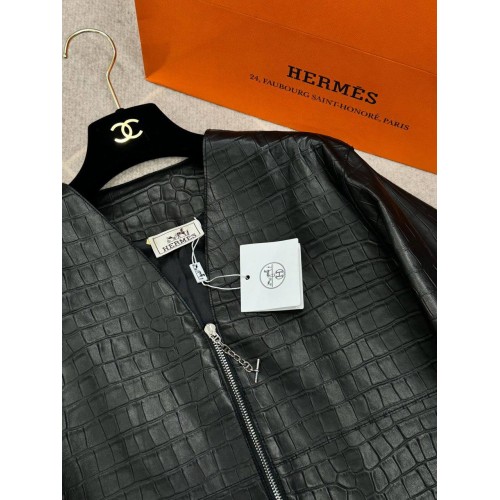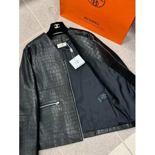 Куртка Hermes черного цвета. Спокойный черный оттенок приглушает яркость, делая образ более утонченным и элегантным. Куртка подарит Вам тепло даже в холодные дни. В нашем интернет-магазине вы можете купить копии курток с доставкой по Москве и по всей России.
