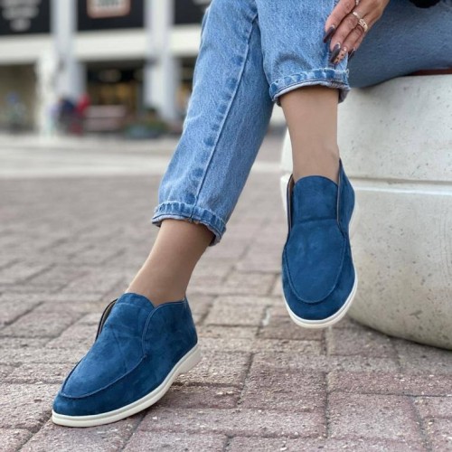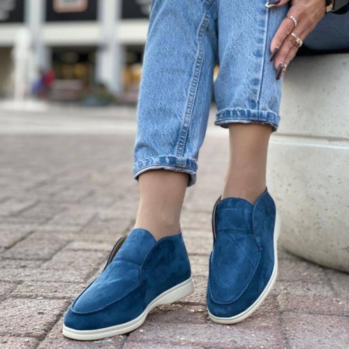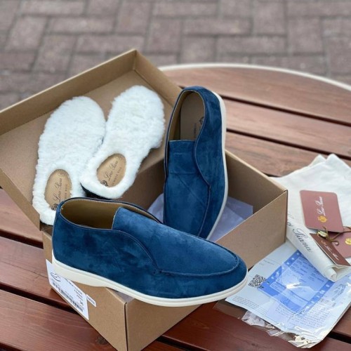Светло-синие лоферы Loro Piana с меховой стелькой выполнены из мягкой натуральной замши. Очень удобные стельки доставят по истине невероятную легкость ногам. Современные лоферы можно носить как на работу в офис, так и вечером на свидания. В нашем интернет-магазине вы можете купить копии лоферов с доставкой по Москве и по всей России.