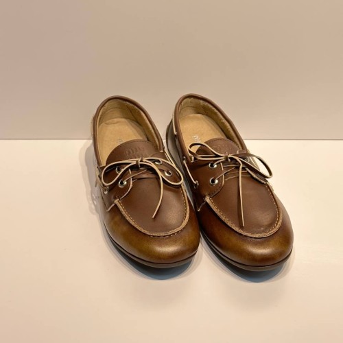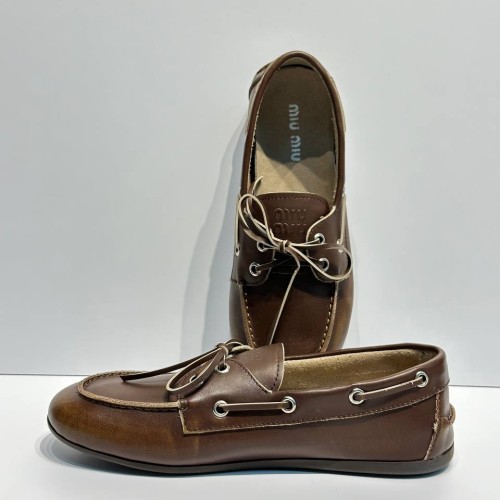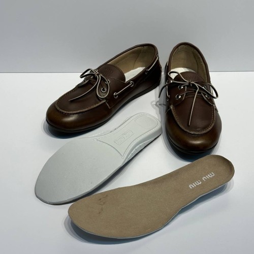 Коричневые женские лоферы Miu Miu выполнены из натуральной кожи. Модная модель лоферов идеально завершит выбранный вами образ. Амортизированная стелька и удобная шнуровка обеспечат ногам полный комфорт. Ваши ноги не будут уставать даже при длительных прогулках. В нашем интернет-магазине вы можете купить копии лоферов с доставкой по Москве и по всей России.