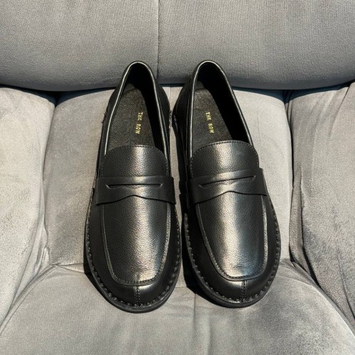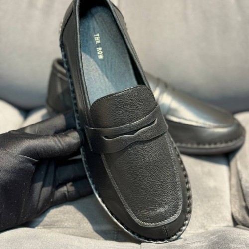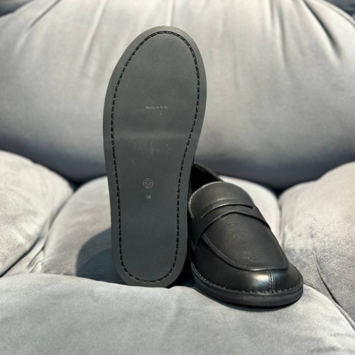 Женские черные лоферы The Row из натуральной кожи. Классика, в которой всегда можно быть уверенной. Дизайнеры дополнили модель удобной подошвой, которая позволяет комфортно чувствовать себя в течение всего дня. В нашем интернет-магазине вы можете купить копии лоферов с доставкой по Москве и по всей России.