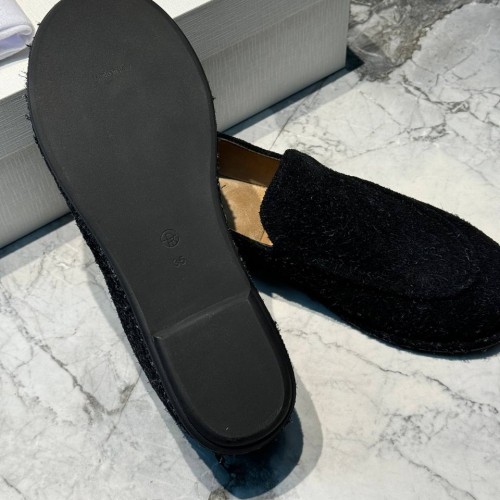 Женские черные лоферы The Row из натуральной кожи и войлока. Исполнение лоферов обеспечивает идеальную посадку и комфорт. Эксклюзивные лоферы успешно дополнят ваши лаконичные деловые, повседневные или даже вечерние выходы. В нашем интернет-магазине вы можете купить копии лоферов с доставкой по Москве и по всей России.