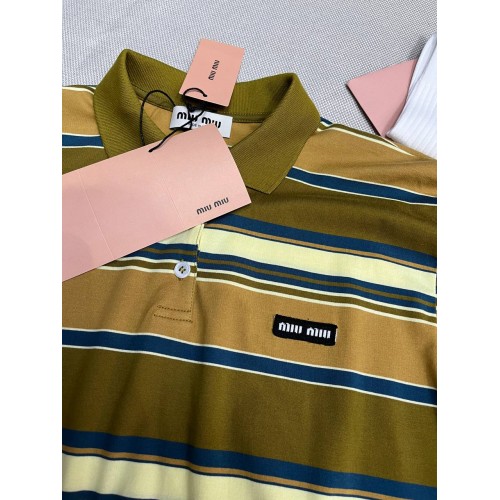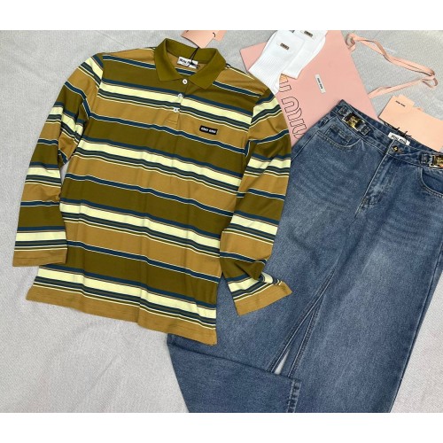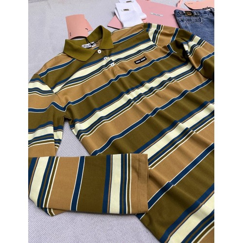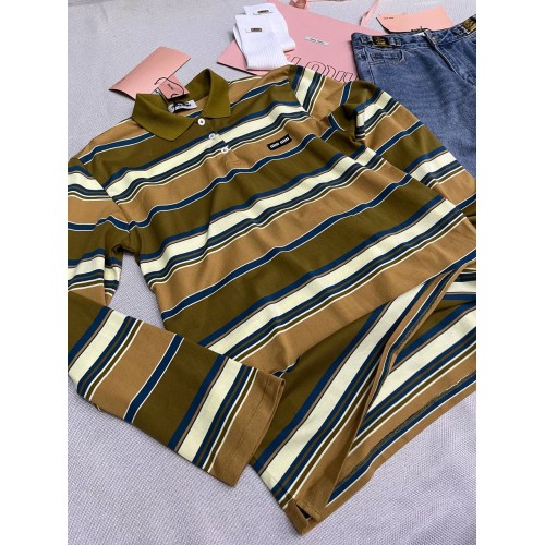 Лонгслив Miu Miu коричневого цвета с полосками. Актуальная модель преобразит ваш образ, добавив в него свежести и стиля. Изделие идеально подойдет для повседневного ношения. В нашем интернет-магазине вы можете купить копии лонгсливов с доставкой по Москве и по всей России.