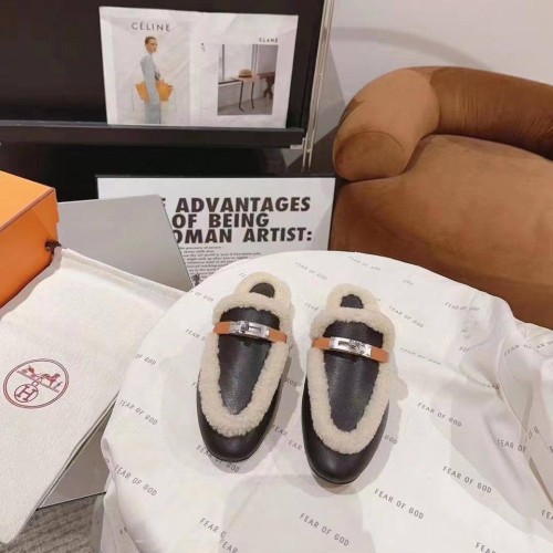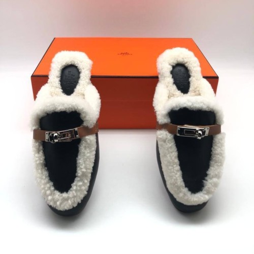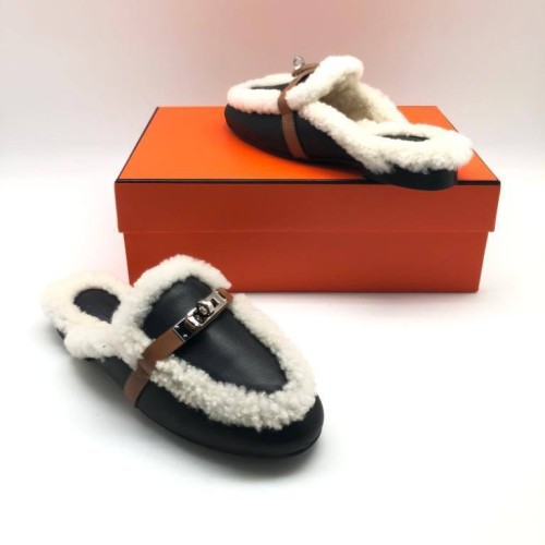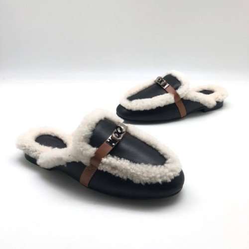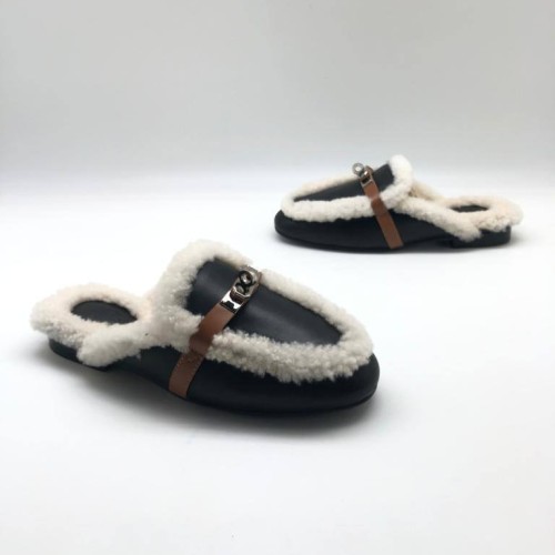 Черные мюли Hermes из белой овчины и натуральной кожи. Утонченная модель отличается удобством и теплом. Знаменитая кожаная пряжка Kelly завершает дизайн обуви. Идеальные мюли для повседневной носки. В нашем интернет-магазине вы можете купить копии мюли с доставкой по Москве и по всей России.