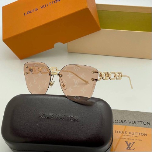 Женские коричневые солнцезащитные очки от Louis Vuitton. Коллекция 2023 года. Степень защиты от ультрафиолета UF400. Нежный оттенок модели поможет создать Вам легкие летние образы. Стильные очки, с изображением бренда на линзах, станут Вашим любимым аксессуаром. В нашем интернет-магазине вы можете купить копии очков с доставкой по Москве и по всей России.