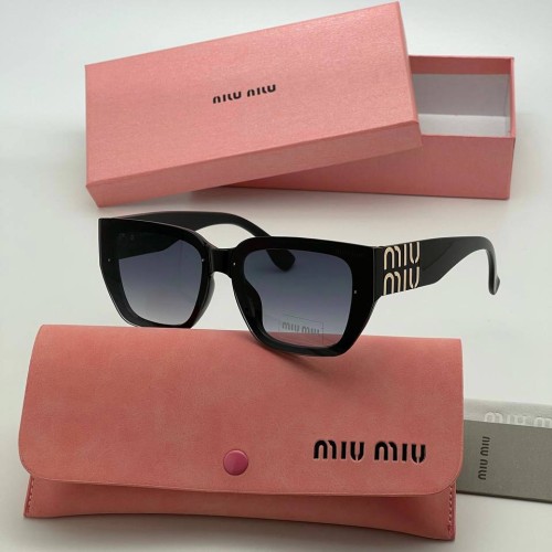 Женские черные солнцезащитные очки от Miu Miu. Коллекция: весна-лето 2023 года. Степень защиты от ультрафиолета UF400. Стильные солнечные очки дадут надежную защиту от солнца и помогут создать множество модных пляжных, повседневных и городских образов. Оправа очков надежна и придает строгость и элегантность образу. В нашем интернет-магазине вы можете купить копии очков с доставкой по Москве и по всей России.