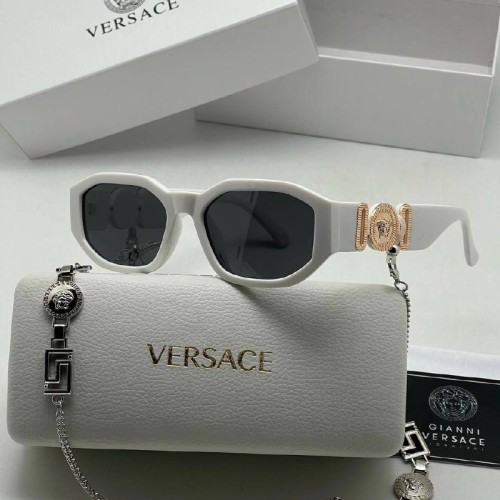 Женские белые солнцезащитные очки от Versace. Коллекция 2023 года. Степень защиты от ультрафиолета UF400. Популярная, трендовая и стильная модель подойдет для летних прогулок. Прекрасно защитит Ваши глаза от вредного ультрафиолетового излучения и яркого солнца. В нашем интернет-магазине вы можете купить копии очков с доставкой по Москве и по всей России.