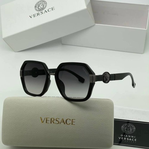 Женские черные солнцезащитные очки от Versace. Коллекция 2023 года. Степень защиты от ультрафиолета UF400. Стильные очки от солнца с затемненными линзами имеют высокую степень защиты от ультрафиолетовых лучей. В них более комфортное пребывание на солнце. В нашем интернет-магазине вы можете купить копии очков с доставкой по Москве и по всей России.