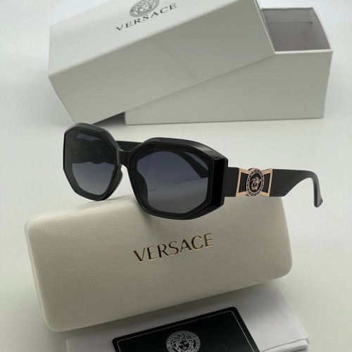Женские черные солнцезащитные очки от Versace. Коллекция 2023 года. Степень защиты от ультрафиолета UF400. Темные очки будут смотреться эффектно с кожаной курткой, легким летним платьем, строгим костюмом. Аксессуар, который добавит в Ваш образ стиля. В нашем интернет-магазине вы можете купить копии очков с доставкой по Москве и по всей России.