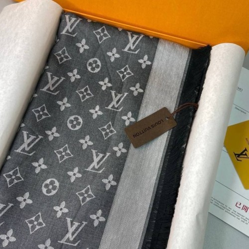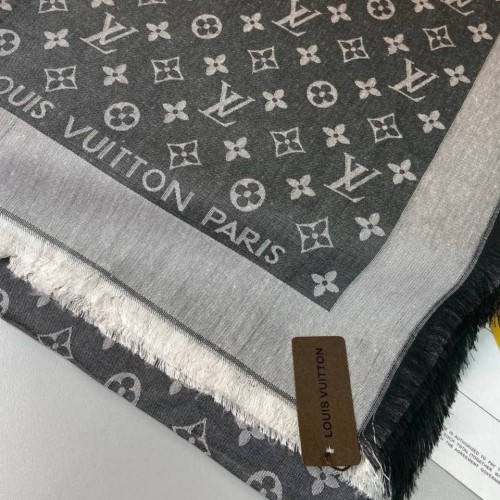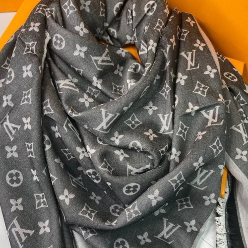 Женский серый палантин Louis Vuitton изготовлен из шерсти и шелка.