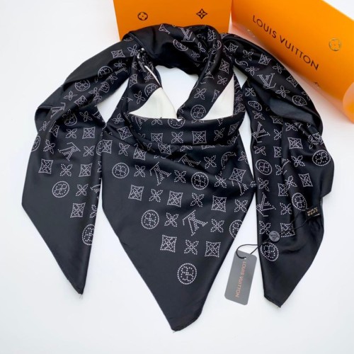 Палантин Louis Vuitton черного цвета с белыми вставками. Изготовлен из натурального шёлка.