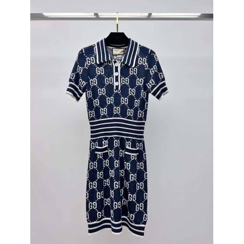 Платье Gucci синего цвета. Универсальное платье подчеркнёт вашу элегантность. Фасон слегка свободный, ткань не сильно прилегает к телу, что дает комфорт при движении. В нашем интернет-магазине вы можете купить копии платьев с доставкой по Москве и по всей России.