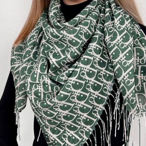 Женский платок Christian Dior зелёного цвета. Материал: хлопок, бамбук.