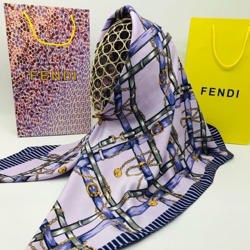 Платок Fendi розового цвета с синими и черными вставками. Изготовлен из шелка.