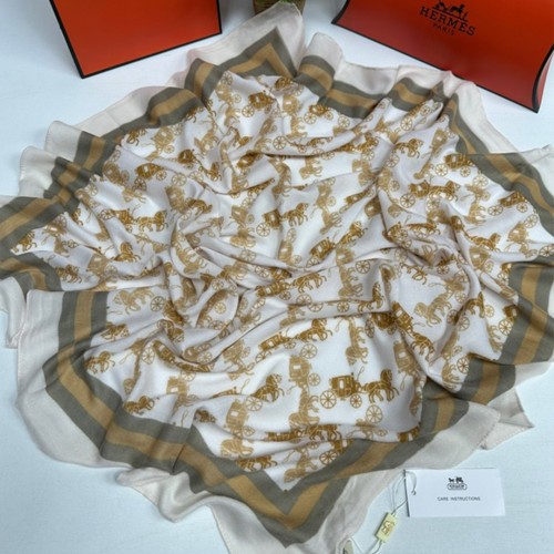 Платок Hermes белого цвета с золотыми и серыми вставками. Изготовлен из кашемира и шелка.