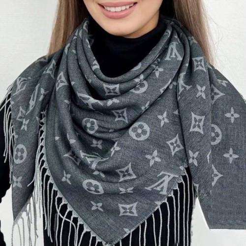 Женский платок Louis Vuitton серого цвета. Материал: шерсть, вискоза.