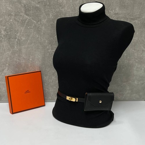 Черный ремень Hermes из натуральной кожи. Съемный кошелек добавляет аксессуару функциональности. Идеально будет смотреться как с брюками, так и с юбкой или платьем. В нашем интернет-магазине вы можете купить копии ремней с доставкой по Москве и по всей России.