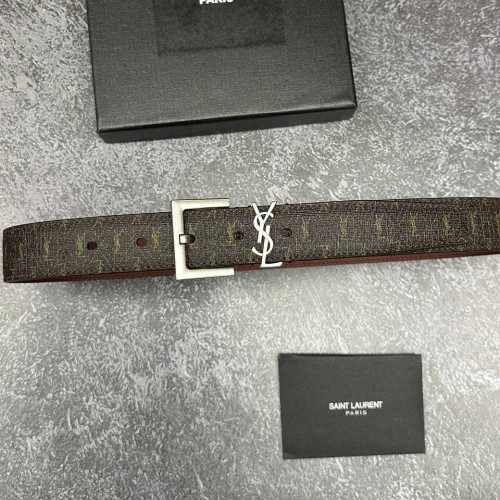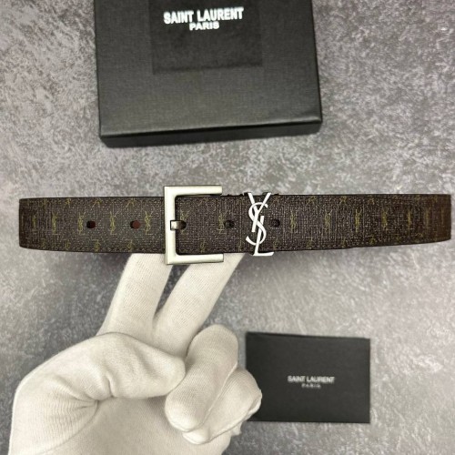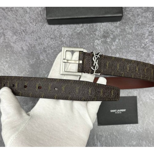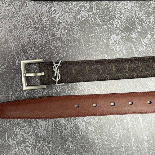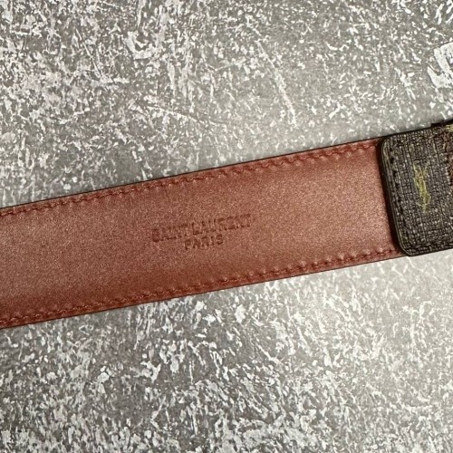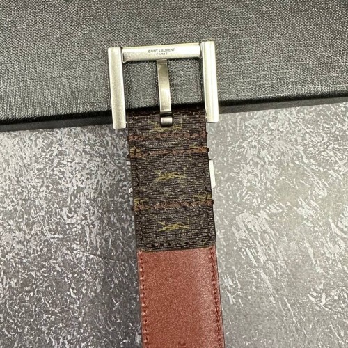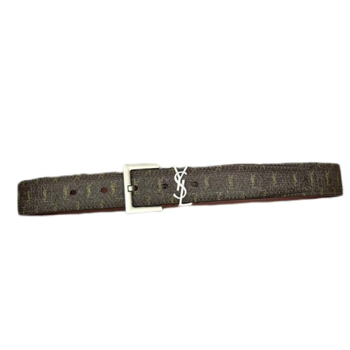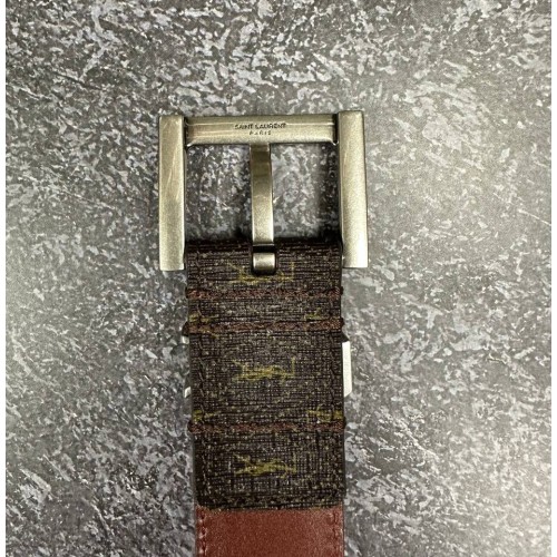 Коричневый ремень Saint Laurent из натуральной кожи и канвы с пряжкой из серебряного металла. Эта практичная и функциональная модель просто идеальна для создания делового, повседневного или романтичного образа. Удобный ремень гарантированно станет великолепным дополнением любого модного наряда. В нашем интернет-магазине вы можете купить копии ремней с доставкой по Москве и по всей России.