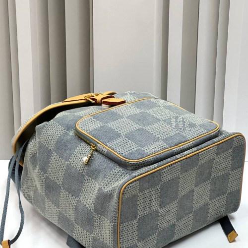 Голубой рюкзак Louis Vuitton из текстиля и натуральной кожи. Эта стильная модель станет эффектным дополнением к вашему образу. Аксессуар удобно использовать, он вместит всё необходимое. В нашем интернет-магазине вы можете купить копии рюкзаков с доставкой по Москве и по всей России.