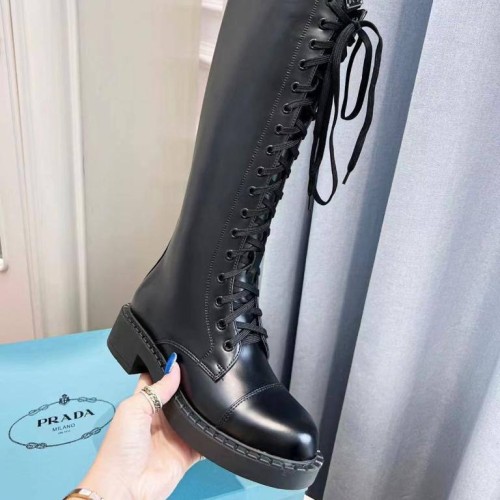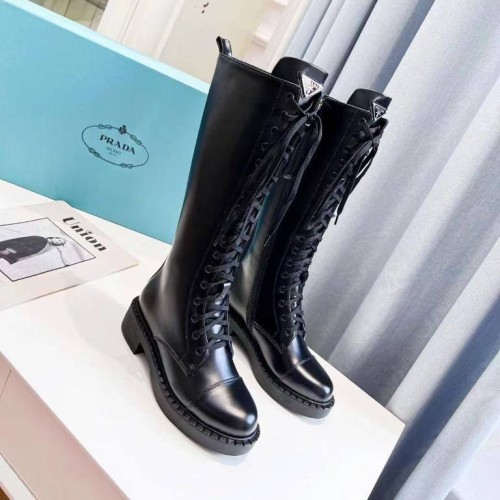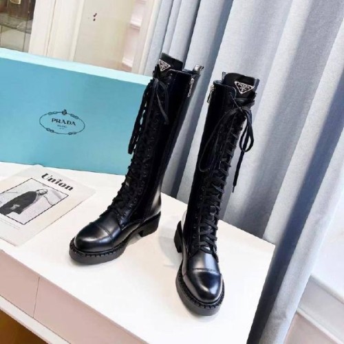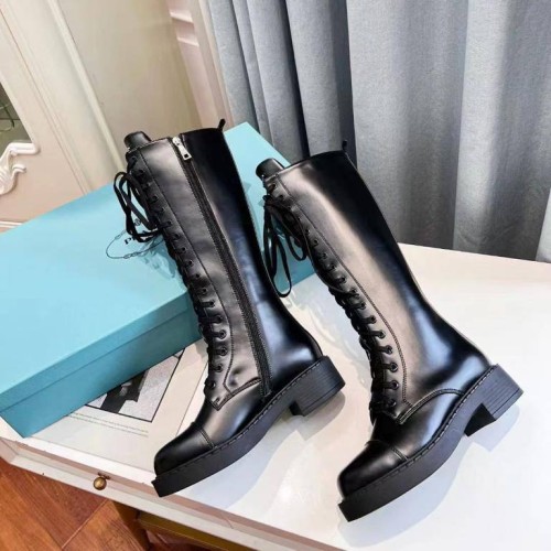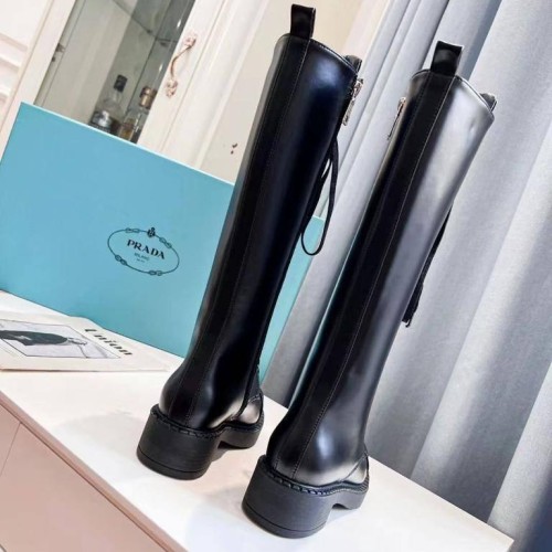 Стильные женские черные сапоги Prada из натуральной кожи. Идеальный модный тандем классики и современности. Сочетайте сапоги с узкими джинсами, брюками и легинсами или короткими шортами-бермудами. В нашем интернет-магазине вы можете купить копии сапог с доставкой по Москве и по всей России.
