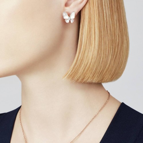 Золотые cерьги Van Cleef с перламутром из ювелирного сплава. Серьги в виде невероятных бабочек придадут элегантности и утонченности вашему образу. Лёгкие и изысканные, они просто созданы для того, чтобы наполнять счастьем каждый день. В нашем интернет-магазине вы можете купить копии сережек с доставкой по Москве и по всей России.