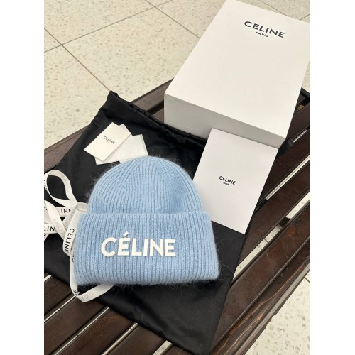 Шапка Celine голубого цвета. Модель облегает голову, защищая от холода и ветра. Шапка имеет плотный отворот, на котором размещен фирменный логотип. В нашем интернет-магазине вы можете купить копии шапок с доставкой по Москве и по всей России.