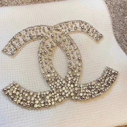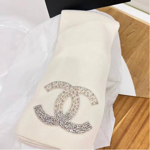 Стильный белый женский шарф с эмблемой Chanel. Изготовлен из шерсти и вискозы.