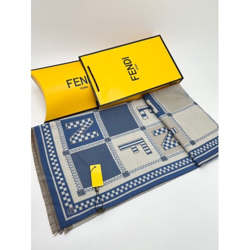 Женский шарф Fendi бело-голубого цвета с геометрическим рисунком. Материал: шелк, кашемир.