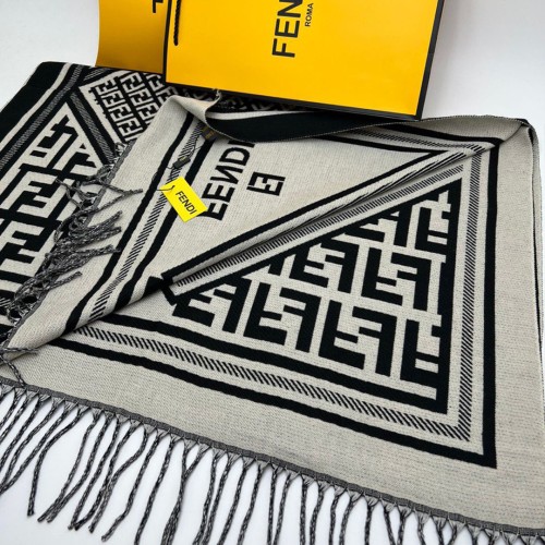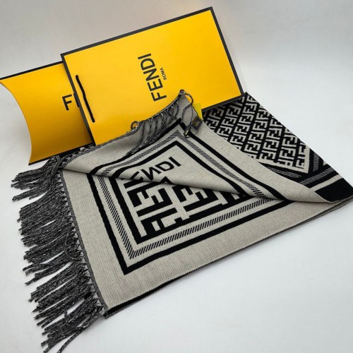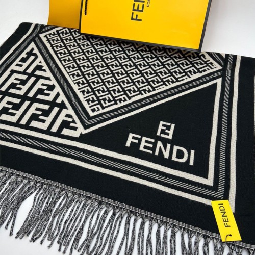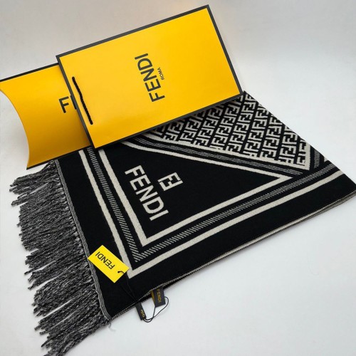 Шарф Fendi черного цвета с белыми вставками. Изготовлен из кашемира и шелка.