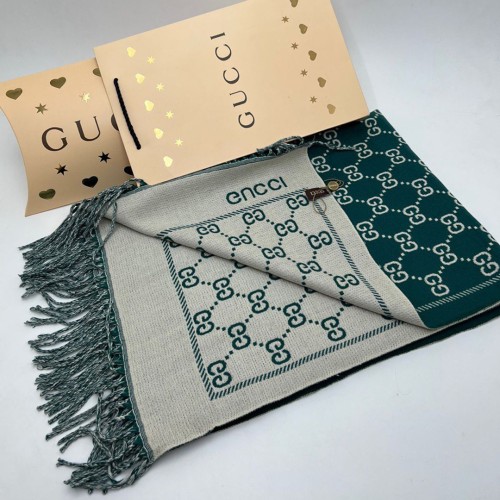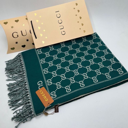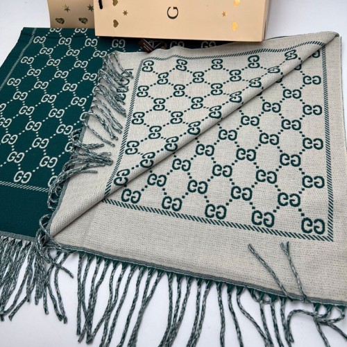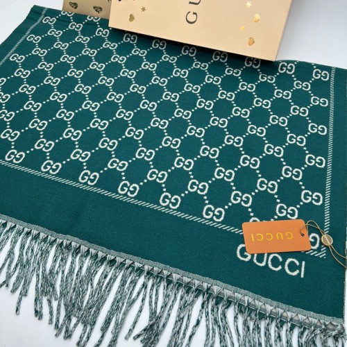 Шарф Gucci зеленого цвета с белыми вставками. Изготовлен из кашемира и шелка.