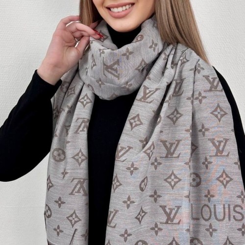 Женский шарф Louis Vuitton серого цвета. Материал: вискоза, шерсть.