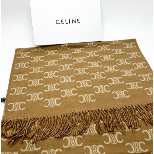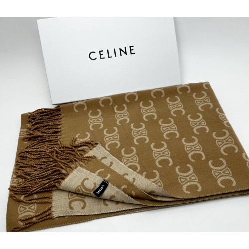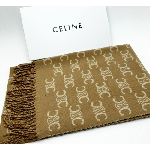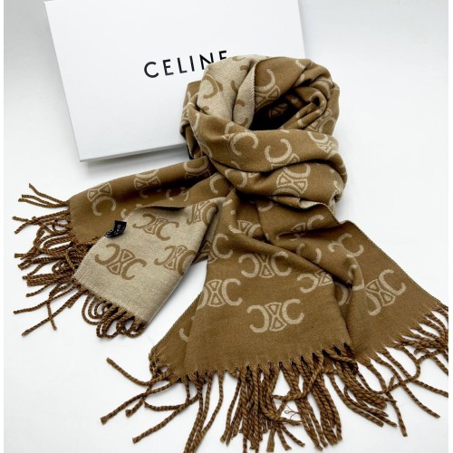 Шарф Сeline коричневого цвета с бежевыми вставками. Изготовлен из кашемира и шёлка.