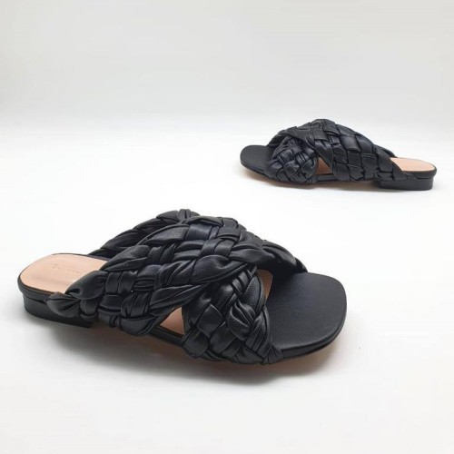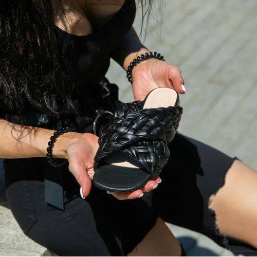 Черные шлепанцы Bottega Veneta из натуральной кожи. Роскошная модель для создания современных, актуальных образов. Дизайн из переплетенных кожаных полос никого не оставит равнодушным. В нашем интернет-магазине вы можете купить копии шлёпанцев с доставкой по Москве и по всей России.