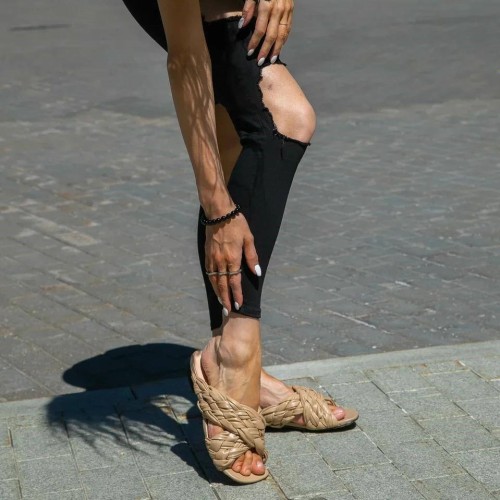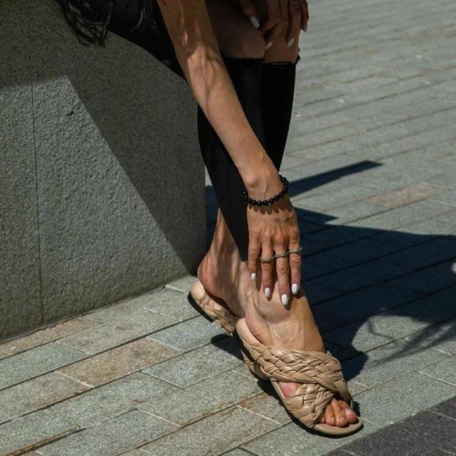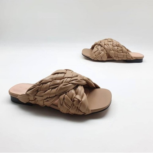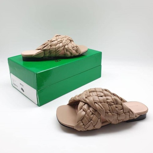 Бежевые шлепанцы Bottega Veneta из натуральной кожи. Роскошная пара обуви станет выбором номер один для современной модницы. Легкая модель поможет правильно расставить цветовые акценты в вашем образе. В нашем интернет-магазине вы можете купить копии шлёпанцев с доставкой по Москве и по всей России.