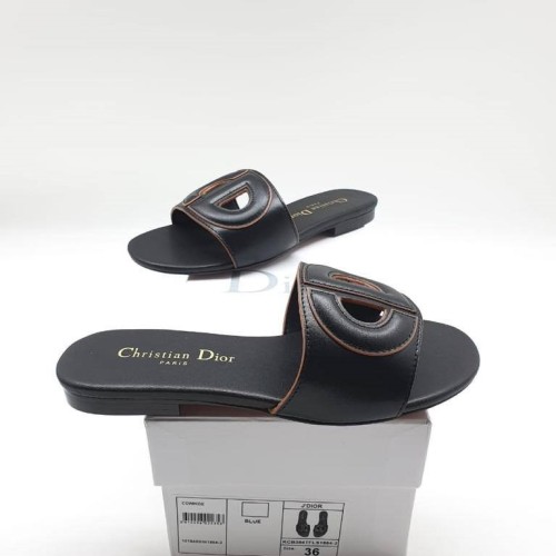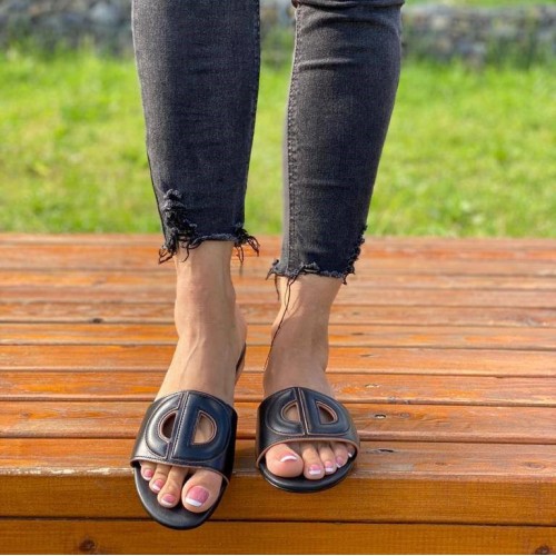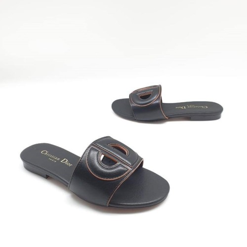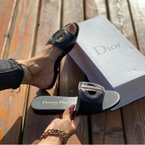 Черные шлепанцы Christian Dior из натуральной кожи. Пару на тонкой подошве и едва заметном каблуке выполнили из мягкой кожи. Сдержанный дизайн модели будет отлично смотреться в любом образе. В нашем интернет-магазине вы можете купить копии шлёпанцев с доставкой по Москве и по всей России.