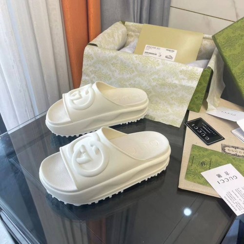 Женские белые шлепанцы Gucci из качественого каучука. Данная обувь украшена на видном месте инициалом бренда. Элегантные шлепанцы идеально подойдут к летнему образу. В нашем интернет-магазине вы можете купить копии шлёпанцев с доставкой по Москве и по всей России.