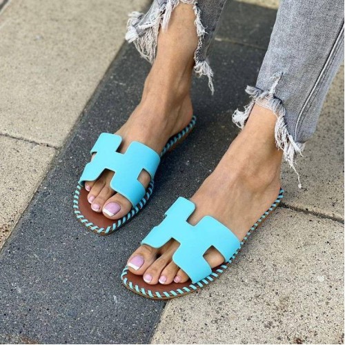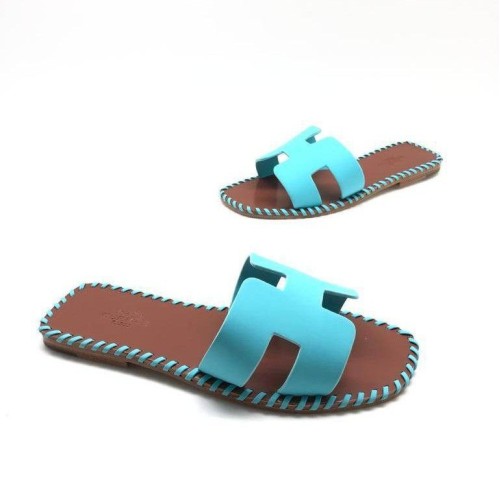 Голубые шлепанцы от Hermes из натуральной кожи. Ремешок красивого оттенка плотно облегает ногу. Идеальная модель для современного ритма жизни. В нашем интернет-магазине вы можете купить копии шлёпанцев с доставкой по Москве и по всей России.