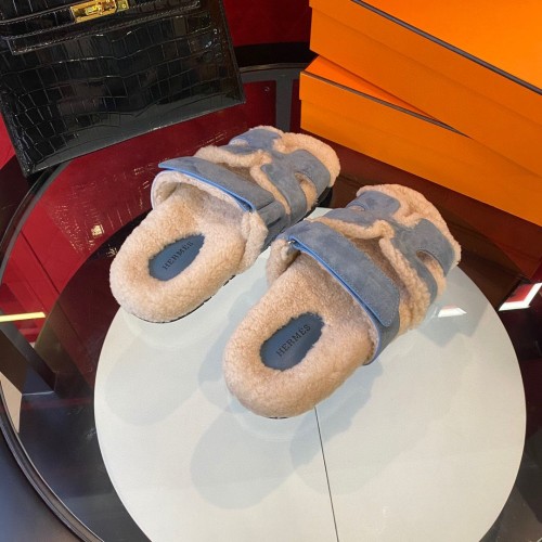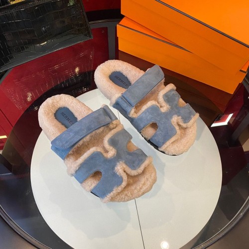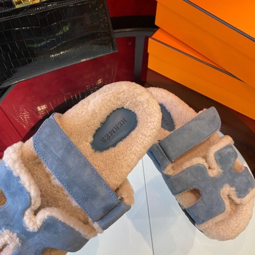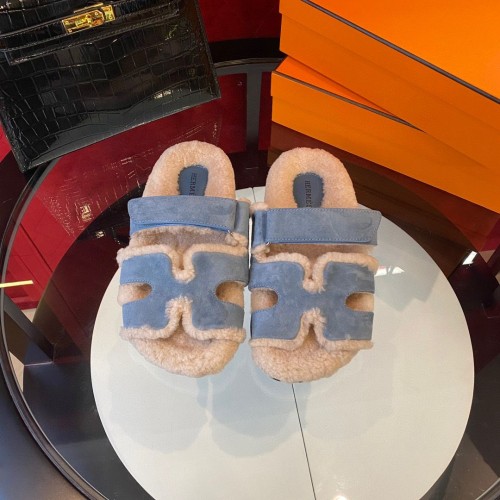 Голубые шлепанцы Hermes из высококачественной мягкой замши и натурального меха. Эти мягкие и оригинальные шлепанцы станут отличным дополнением к гардеробу каждой женщины. Мягкий и теплый мех обеспечивает нежное ощущение на ноге, а также прекрасную защиту от холода. В нашем интернет-магазине вы можете купить копии шлёпанцев с доставкой по Москве и по всей России.