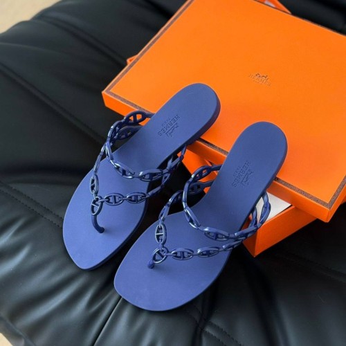 Шлепанцы от Hermes синего цвета из качественной резины. Стильные шлепанцы органично впишутся как в яркий городской образ, так и в непринужденный ансамбль для отдыха у моря. Идеальный выбор для тех, кто ценит комфорт и элегантность. В нашем интернет-магазине вы можете купить копии шлёпанцев с доставкой по Москве и по всей России.