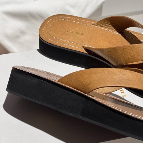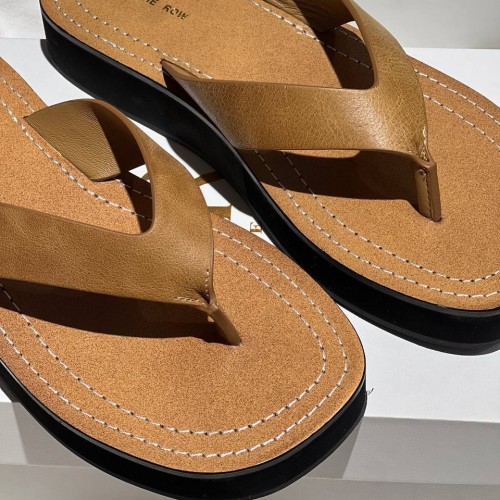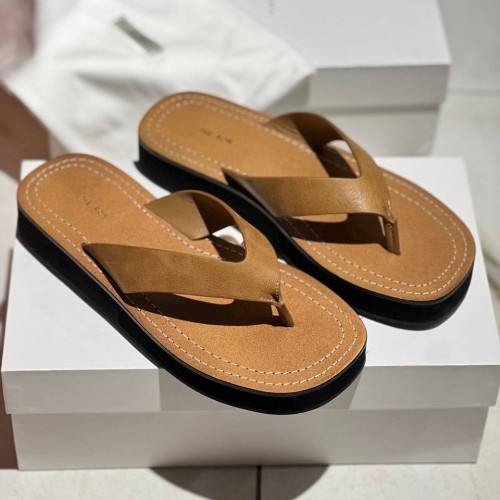 Коричневые женские шлепанцы The Row из натуральной кожи. Шлепанцы делает максимально комфортными широкая подошва с ортопедической стелькой, снижающая нагрузку на суставы, а эффектными - материал. Выразительно смотрятся две пряжки через палец из качественной кожи. В нашем интернет-магазине вы можете купить копии шлепанцев с доставкой по Москве и по всей России.