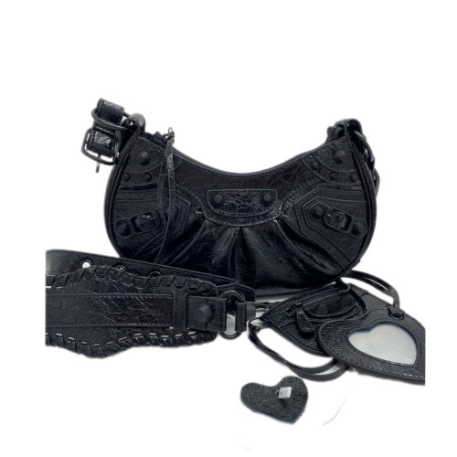 Сумка с закрытием на молнию. Внутри: одно отделение. В комплекте съемный карман-кошелек с отделениями и съемное зеркало в виде сердца.