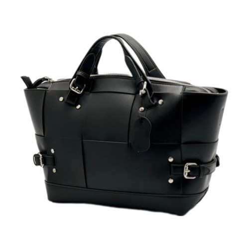 Черная сумка Bottega Veneta из натуральной кожи. Ручки и съемный плечевой ремень позволят носить модель разными вариациями. Стильный аксессуар станет идеальным завершением вашего образа. В нашем интернет-магазине вы можете купить копии сумок с доставкой по Москве и по всей России.