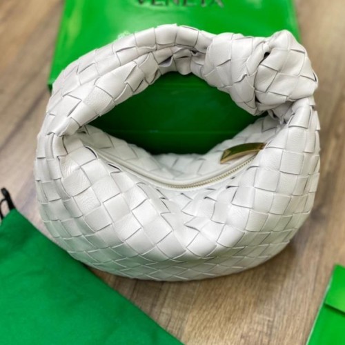 Белая сумка Bottega Veneta из натуральной кожи. Стильная и вместительная модель с фирменным плетением из кожаных полос. Дизайн аксессуара завершает удобная ручка сверху, завязанная объемным узлом. В нашем интернет-магазине вы можете купить копии сумок с доставкой по Москве и по всей России.