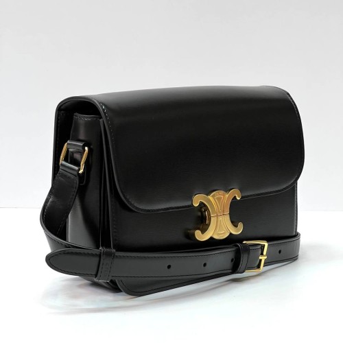 Черная сумка Celine Classique Triomphe из натуральной кожи. Классическая, небольшая, но вместительная сумка изготовлена в минималистичном дизайне и очень удобна в использовании. Она выполнена из высококачественной натуральной кожи и дополнена фурнитурой цвета благородного золота. В нашем интернет-магазине вы можете купить копии сумок с доставкой по Москве и по всей России.