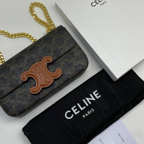 Коричневая сумка Celine Cuir Triomph из натуральной кожи. Такая универсальная сумка станет незаменимым помощником в составлении образов благодаря своей практичности. Она удачно дополнена стильной цепочкой-ремешком через плечо из металла золотого цвета. В нашем интернет-магазине вы можете купить копии сумок с доставкой по Москве и по всей России.