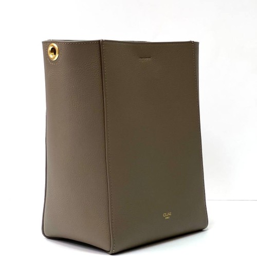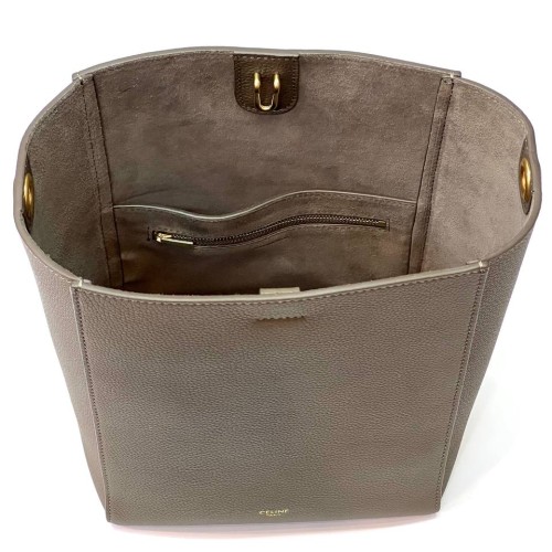Серая сумка Celine Sangle Bucket из натуральной кожи. Вместительная сумка из высококачественной натуральной кожи удачно дополнена оригинальной фурнитурой цвета благородного золота. Она великолепно подойдет под любой стильный образ и сможет разместить в себе все необходимые вам вещи. В нашем интернет-магазине вы можете купить копии сумок с доставкой по Москве и по всей России.