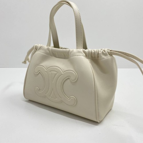 Белая сумка Celine из натуральной кожи. Стильная модель дополнена съемным плечевым ремнем. Объем аксессуара можно регулировать кожаными шнурами по бокам. В нашем интернет-магазине вы можете купить копии сумок с доставкой по Москве и по всей России.